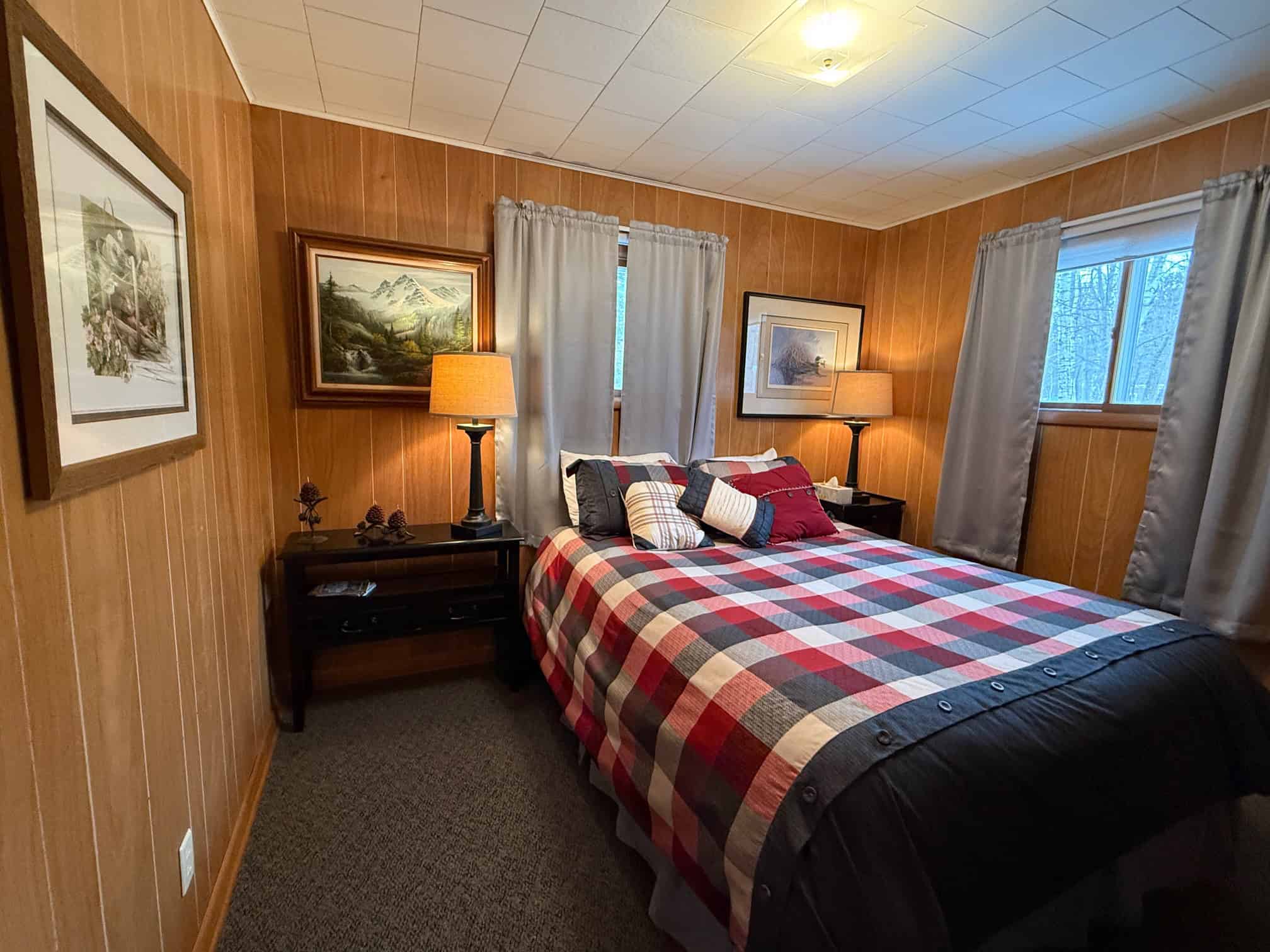 Big Chip Island View is a cozy, comfortable cabin located 22 miles east of Hayward on the beautiful lake Chippewa Flowage. This wilderness lake has 200 miles of shoreline and 140 islands. Two bedrooms and one bath, as well as two pull out queen-size beds are available. Sleeps 8 total. Includes a beautiful view of the lake and large dock for use. Lots of parking space and front patio with furniture to enjoy the view. Pet-friendly, open year-round and close to ATV and snowmobile trails.